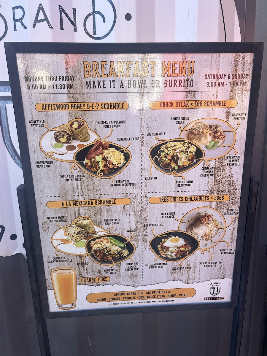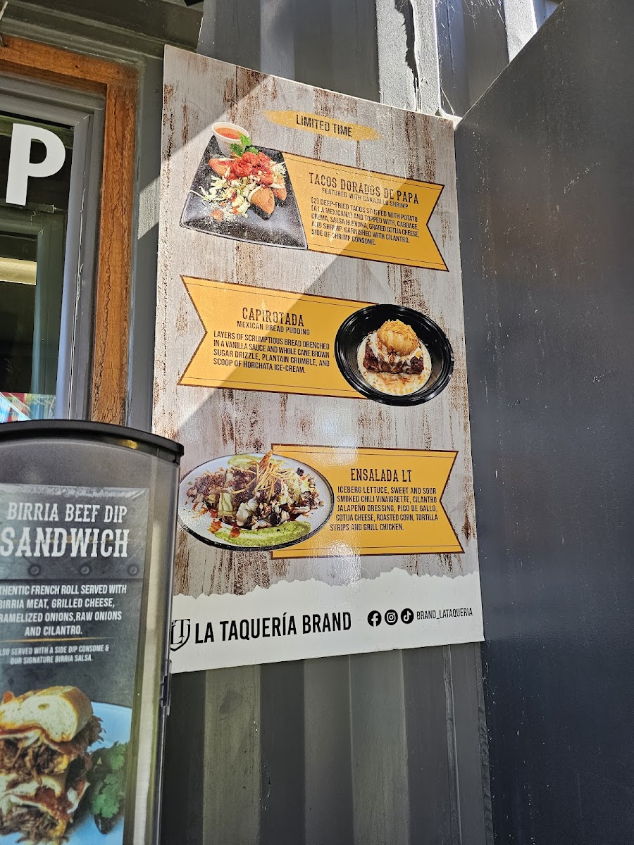 From a reviewer's perspective, La Taqueria Brand-Bixby Knolls offers a menu that is both extensive and thoughtfully curated, highlighting the diversity of Mexican flavors. For taco lovers, the choices range from Vegan Tacos to the savory Tijuana Tacos and crispy Tacos Dorados De Papa, available with or without protein. The Birria Menu stands out with items like 3 Birria Street Tacos, Beef Birria Dip Sandwich, and Birria QuesatacoSide Consome, while the Street Tacos and Quesataco offer classic, crave-worthy options. Breakfast enthusiasts can enjoy Bowls, Burritos, and Tres Chiles Chilaquiles, with weekend specials including Torta De Chilaquiles. For seafood fans, the Del Mar Menu features choices such as Taco Canajillo Shrimp, Burrito De La Baja Fish, and Burrito Chicharron De Pescado. Burrito varieties include LT Burritos, Veggie Burrito, Cali Burrito, Bean & Cheese Burrito, and Bean & Rice Burrito, while quesadilla lovers have Quesadilla Cheese Only or fully loaded Quesadilla options. Complementing the mains are Mulitas, Ensalada LT, Nachos, and Cali Fries, with smaller bites found in Antojitos like Esquite, Churros En Bolsa, and Mexican Bread Pudding. Drinks are equally varied, featuring Miche Style Aquas Flavors like Cucumber-Pineapple Miche Style 32oz, refreshing Agua Fresca Flavors including Watermelon-Pineapple 32oz and Strawberries N Cream 32oz, as well as bottled sodas such as Sangria (Grape) and Mexican Coke, 500mL. For families or group gatherings, the Family & Catering Packs, including the 6 Person Build Your Own Taco Platter Kit and 15 Taco Family Pack, provide a convenient way to share the flavors of La Taqueria. Overall, the menu balances traditional Mexican street food with inventive twists, ensuring there’s something for every palate while keeping signature dishes and fresh flavors at the forefront.